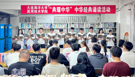 9月25日,党委宣传部、基础部、图书馆部门负责人、学生代表80余人在学院图书馆红色书屋参加“典耀中华”经典诵读活动。活动中,同学们用激昂的声音、饱满的情感诵读着篇篇经典。从《论语》的“学而时习之,不亦乐乎?”到唐诗的“会当凌绝顶,一览众山小”,从宋词的“大江东去,浪淘尽,千古风流人物”到毛泽东诗词“钟山风雨起苍黄,百万雄师过大江”,让意境在时空中变幻,让经典在情感中共鸣,让红色在血脉中传承。